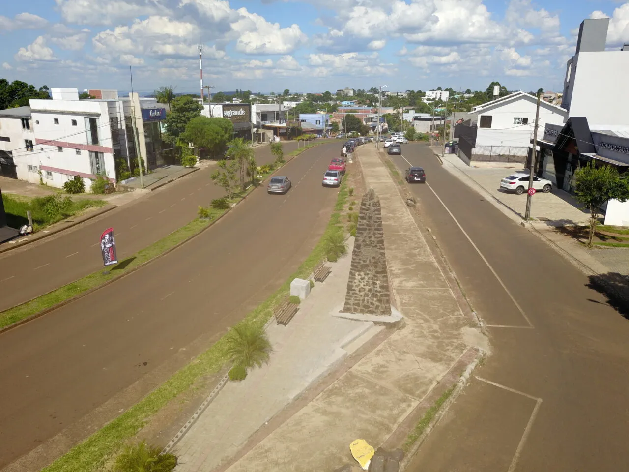 Ao observar a fotografia, é possível perceber o movimento das águas da chuva e a consequente definição da fronteira: águas fluindo para o oeste indicam o território argentino, enquanto aquelas fluindo para leste correspondem ao Brasil.