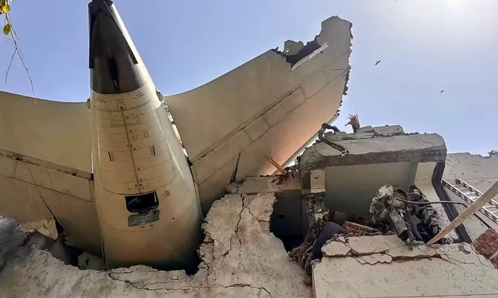 O prédio atingido pela aeronave foi tomado pelas chamas devido à colisão da aeronave. Imagens mostram correria no local com equipes de resgate e bombeiros tentando controlar o fogo, enquanto ajudam vítimas. Além disso, a população também está ao redor do local do acidente prestando auxílio. Segundo o Times of India, um policial afirmou que a construção era um alojamento de médicos.
