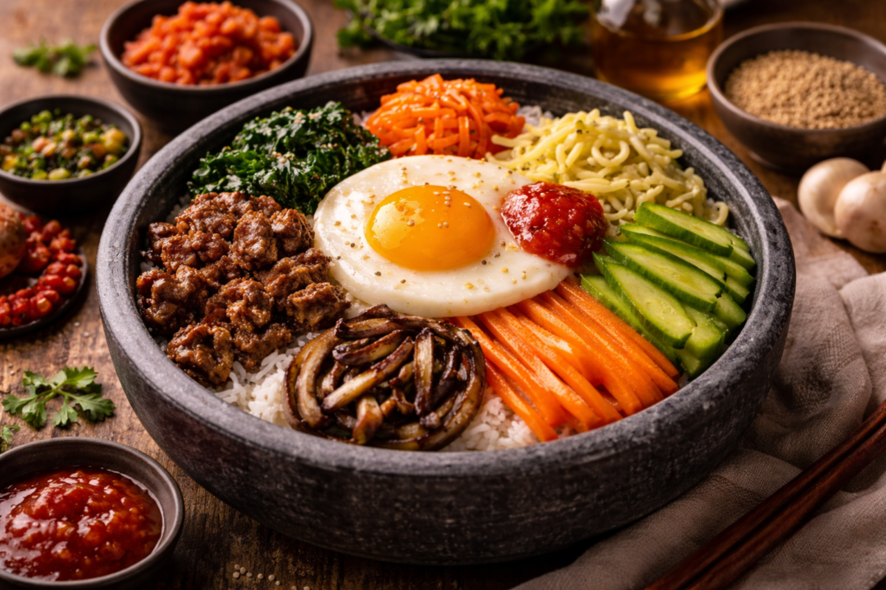 O bibimbap é um dos pratos mais conhecidos e representativos da culinária coreana, reconhecido não apenas pelo sabor, mas também pela harmonia visual e nutricional que apresenta. O nome bibimbap pode ser traduzido literalmente como “arroz misturado”, sendo formado pela junção de “bap” (arroz) e “bibim” (misturar). Apesar da simplicidade do significado, trata-se de uma preparação rica em técnicas, ingredientes e simbolismos culturais, refletindo a filosofia coreana de equilíbrio entre cores, sabores e texturas.