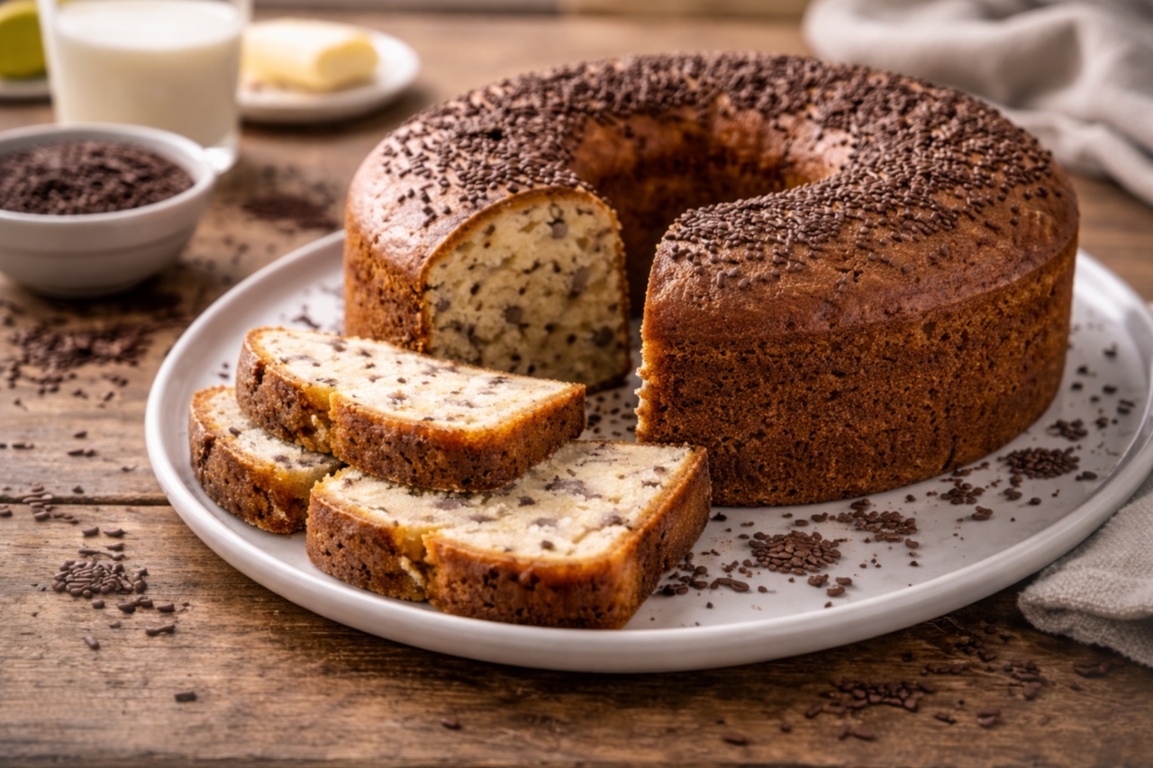 O bolo formigueiro é uma daquelas receitas que despertam memória afetiva logo no primeiro pedaço. Presente em cafés da tarde, aniversários simples, reuniões de família e merendas escolares, ele é conhecido pelo visual característico, repleto de pequenos pontinhos escuros espalhados pela massa clara, que lembram o caminho de formigas — daí o nome curioso. Apesar da aparência divertida, o sabor é sério: um bolo fofinho, equilibrado, com o contraste suave entre a massa de baunilha e o chocolate granulado.
