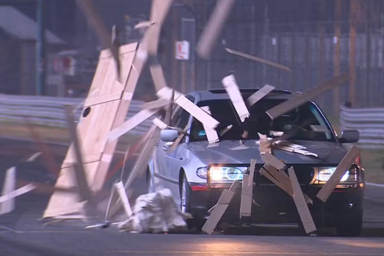 Nos segundos finais, o escapologista conseguiu destravar a caixa e sair às pressas. Um leve tropeço ao deixar a estrutura aumentou ainda mais a tensão do momento. Logo em seguida, o carro atingiu a caixa, destruindo-a completamente, em uma cena que deixou evidente o quão estreita foi a margem de erro.