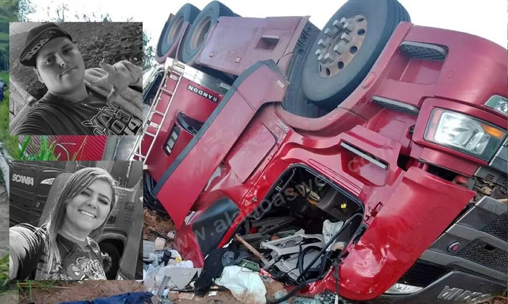 O casal Ismael e Paola, viajavam em uma Scania vermelha, que transportava uma carga de suco com destino a Pernambuco