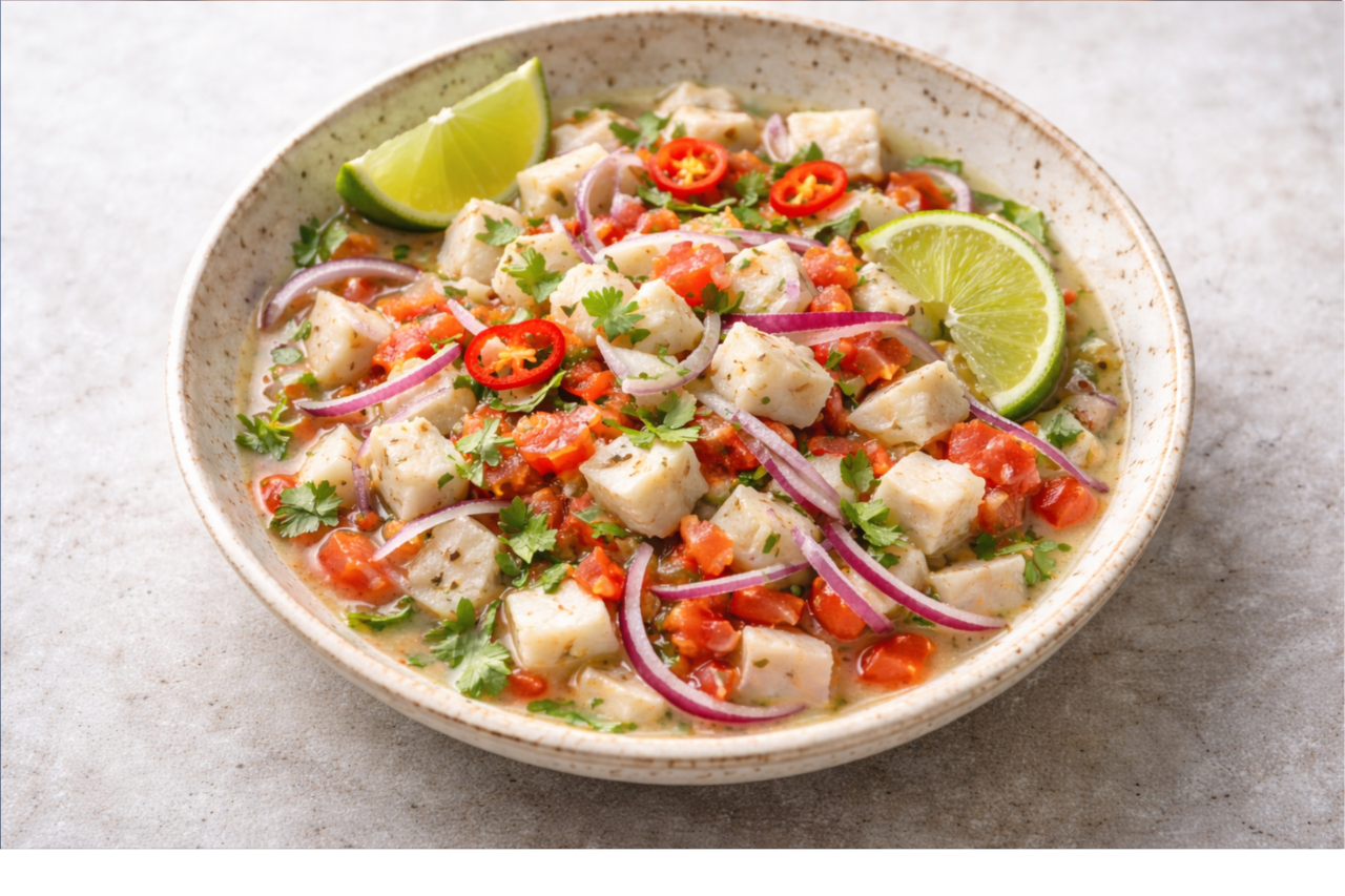 O ceviche é um prato de origem latino-americana, tradicionalmente associado à culinária peruana, que conquistou espaço nas mesas do mundo inteiro graças à sua combinação de frescor, acidez e equilíbrio de sabores. Trata-se de uma preparação à base de peixe cru ou frutos do mar, marinados em suco cítrico, geralmente limão, que “cozinha” o alimento por meio da acidez, sem o uso de calor. Esse processo transforma a textura do peixe, deixando-o firme, opaco e pronto para consumo.