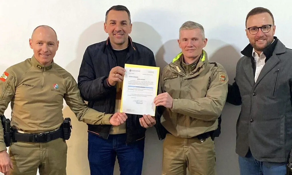 Nesta quarta-feira (11), o comandante do 36º Batalhão de Polícia Militar de Dionísio Cerqueira, recebeu na sede policial a visita do prefeito em exercício Alcir Sawaris, e do Coordenador Regional do MDB, Eduardo Bertoldi, para confirmação da destinação de uma emenda parlamentar no valor de R$300.000,00, voltada à pavimentação completa do pátio do batalhão.