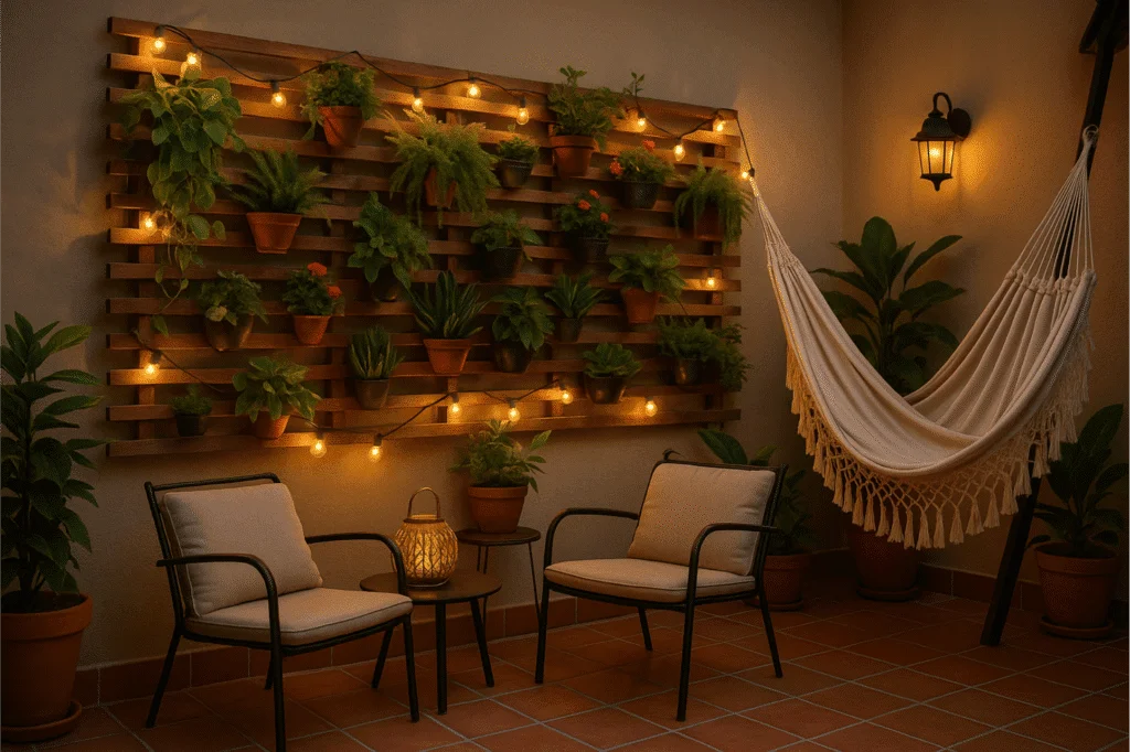 ✔ Use luzes de LED, fitas ou spots para valorizar o jardim à noite.