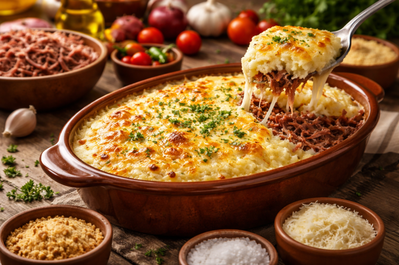 O escondidinho de carne seca é mais do que uma receita: é um símbolo da cozinha brasileira afetiva, que valoriza ingredientes simples e preparo cuidadoso. Cada etapa, do dessalgue ao gratinado final, contribui para um prato equilibrado, cremoso e cheio de sabor. Servido bem quente, ele reúne pessoas à mesa, desperta memórias e mostra que cozinhar também é um ato de carinho. Seja para um almoço especial ou para transformar um dia comum em algo memorável, esse escondidinho cumpre seu papel com excelência.