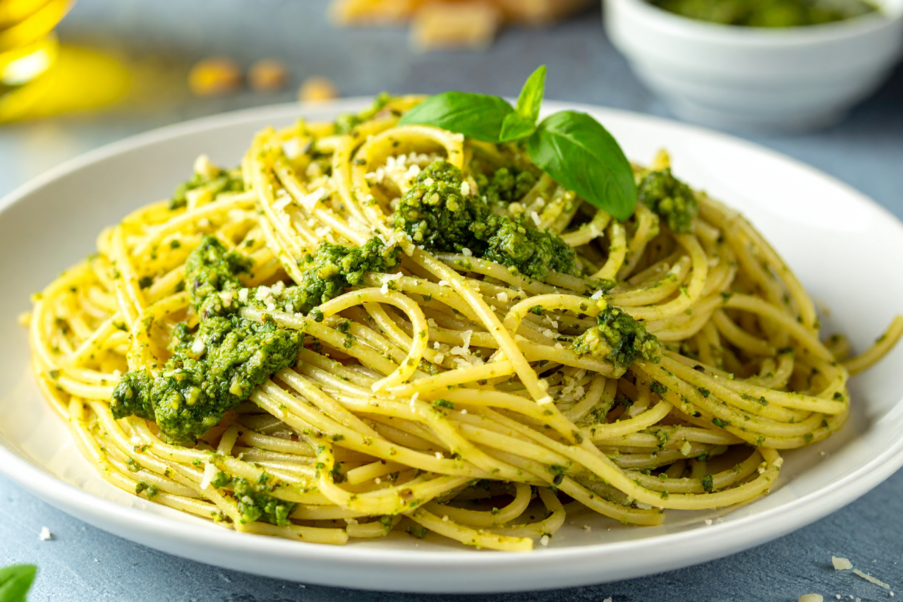 O espaguete ao pesto de manjericão é um daqueles pratos que atravessam gerações sem perder charme, sabor ou relevância. Originária da culinária italiana, a receita ganhou versões pelo mundo, adaptando ingredientes sem abrir mão da essência: frescor, aroma e equilíbrio. O uso das nozes no lugar do tradicional pinoli traz personalidade ao prato, além de tornar a preparação mais acessível e igualmente sofisticada.