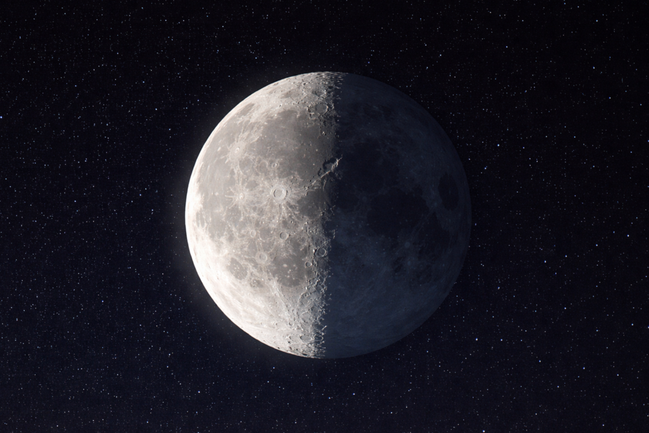 Hoje, a Lua segue na fase Minguante, diminuindo gradualmente sua iluminação no céu noturno até atingir a Lua Nova na próxima semana.