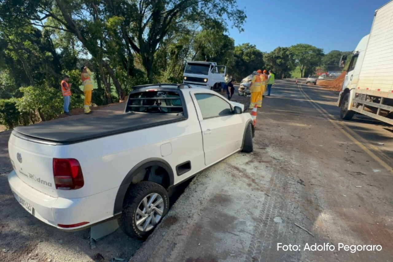 Se envolveram no acidente uma Fiat Strada, uma VW Saveiro e um caminhão VW/31.330 que tracionava uma carreta.
