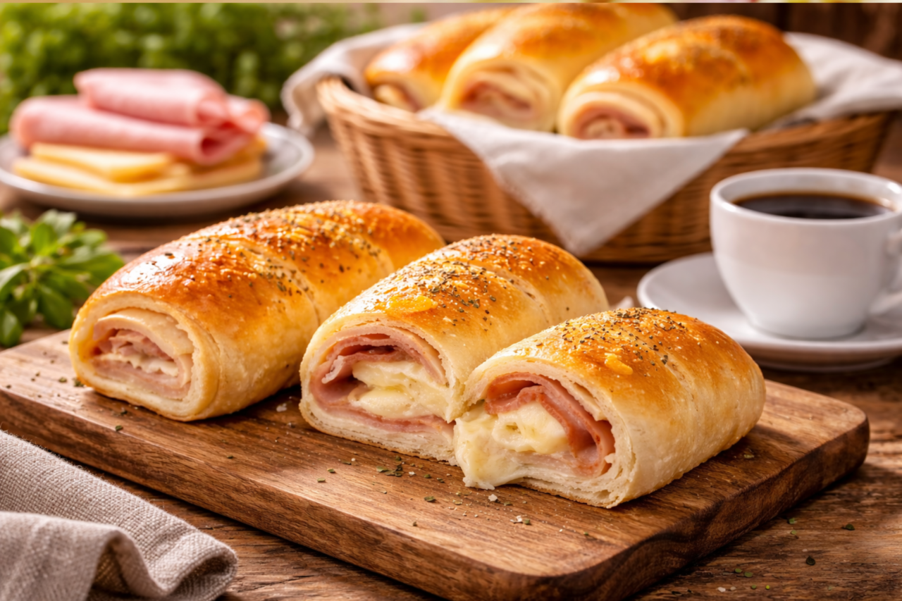 Conhecido em diversas regiões do Brasil como joelho, italiano ou enrolado de presunto e queijo, esse salgado assado é um dos grandes símbolos das padarias brasileiras. Com massa macia, levemente adocicada e extremamente fofinha, ele envolve um recheio clássico e generoso de presunto e queijo derretido, formando uma combinação simples e irresistível.