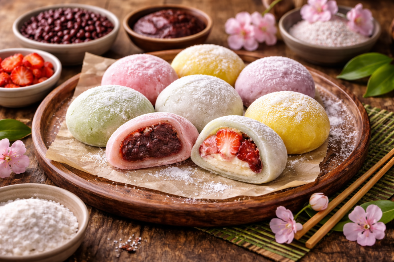 A seguir, apresenta-se uma receita tradicional de mochi recheado com anko, adaptada para o preparo doméstico, respeitando os princípios originais da confeitaria japonesa e mantendo um preparo detalhado e acessível.