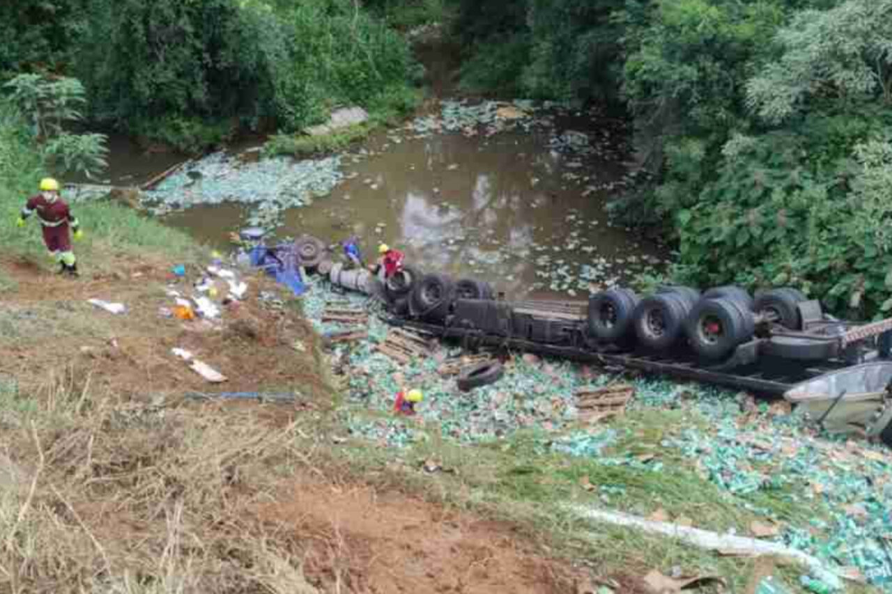 Com o impacto, o motorista, de 34 anos, ficou preso no interior da cabine e morreu no local. A cabine do caminhão ficou dentro da água e a carga foi praticamente destruída, com grande quantidade de bebidas derramadas no rio, formando uma cena impressionante às margens da rodovia.