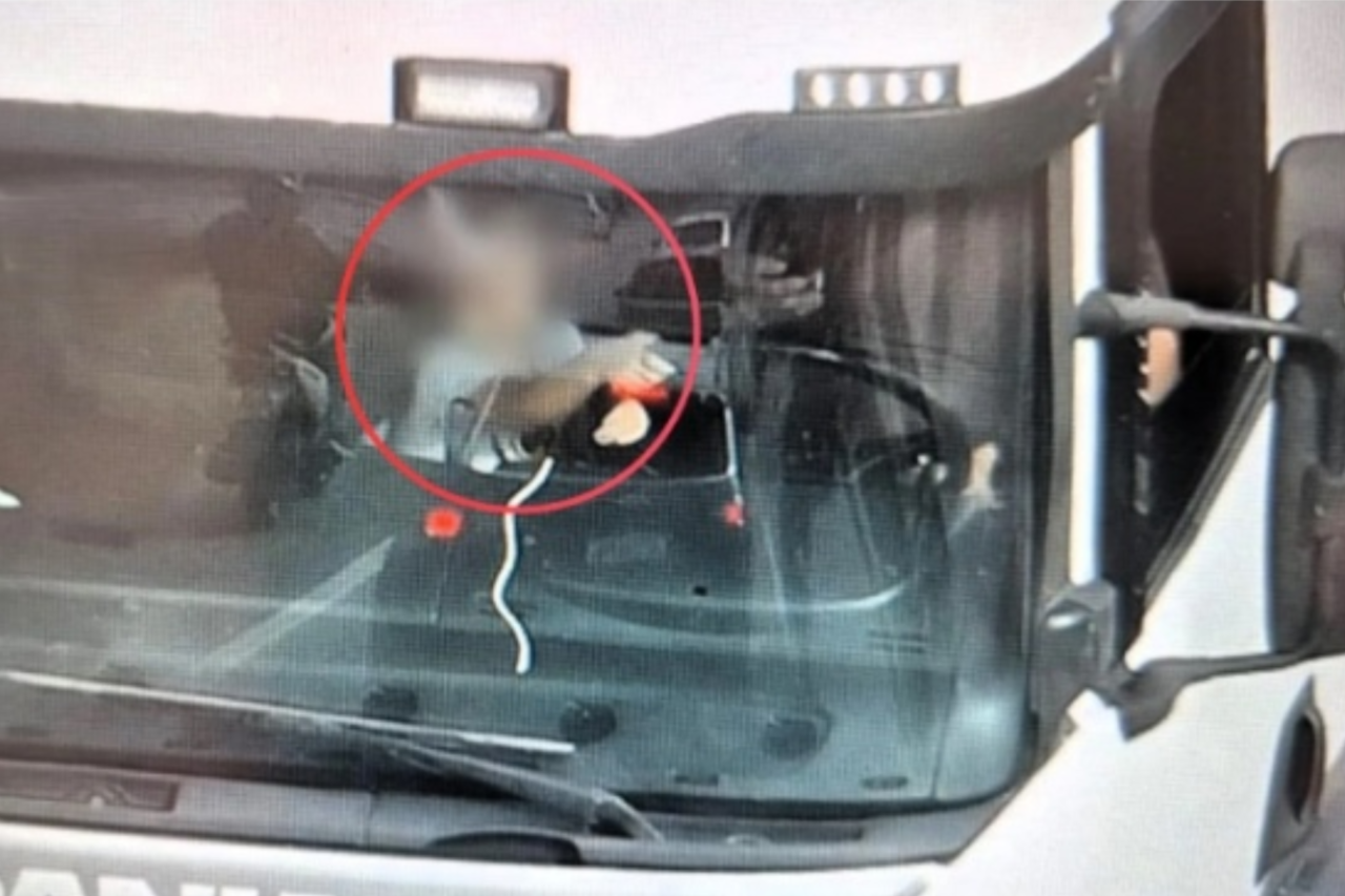 Em um dos casos, uma criança foi flagrada segurando o volante de um caminhão enquanto o motorista utilizava o celular. Em outra ocorrência, uma criança era transportada no colo de uma passageira no banco dianteiro de um automóvel.