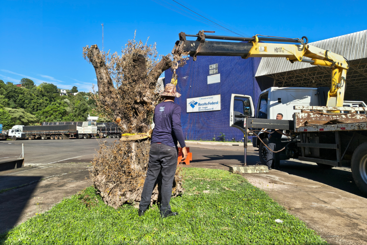 A Receita Federal realizou nessa segunda-feira, dia 19 de janeiro, a doação de duas oliveiras à Prefeitura de Dionísio Cerqueira. A entrega ocorreu na área alfandegada da unidade instalada no município e integra o processo de destinação de árvores apreendidas que, após tratamento sanitário específico, passam a ter uso público ou institucional, evitando o descarte do material vegetal.