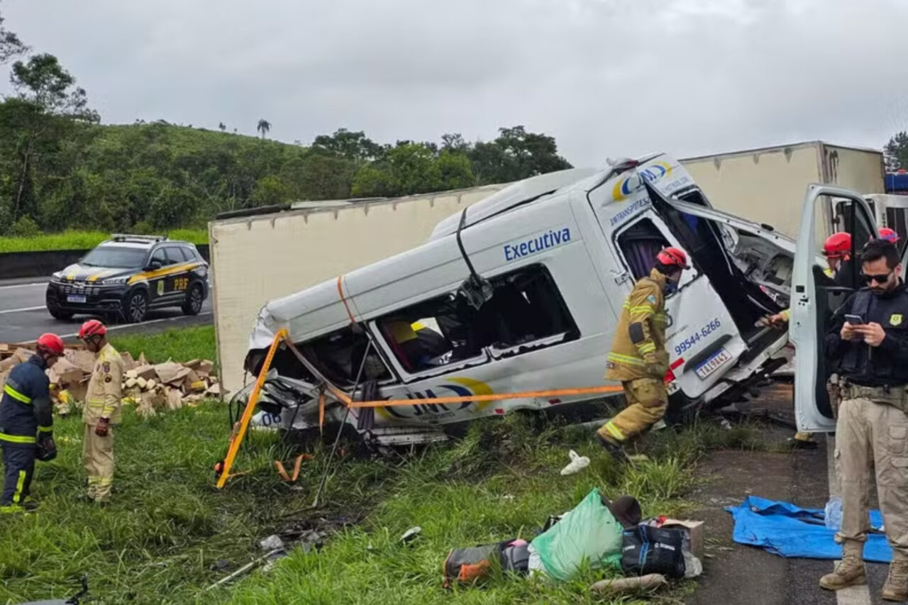 Segundo a PRF, o acidente aconteceu por volta das 3h45, no quilômetro 4,5 da rodovia, próximo à divisa com o estado de São Paulo. Todas as vítimas estavam na van.
